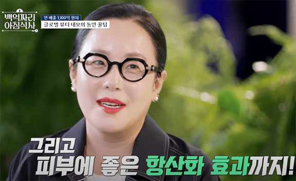 정샘물 원장님은 50세가 넘었음에도 불구하고 여전히 맑고 탄력 있는 피부를 자랑하시죠. 그 비결은 물에 비타민 C 파우더, 레몬즙, 올리브오일을 섞어 피부 건강을 꾸준히 관리하고 있다고 해요. 식물성 오일이 노폐물 배출과 항산화 효과에 큰 도움을 준다고 강조하며 매일 섭취하고 있다고 합니다.